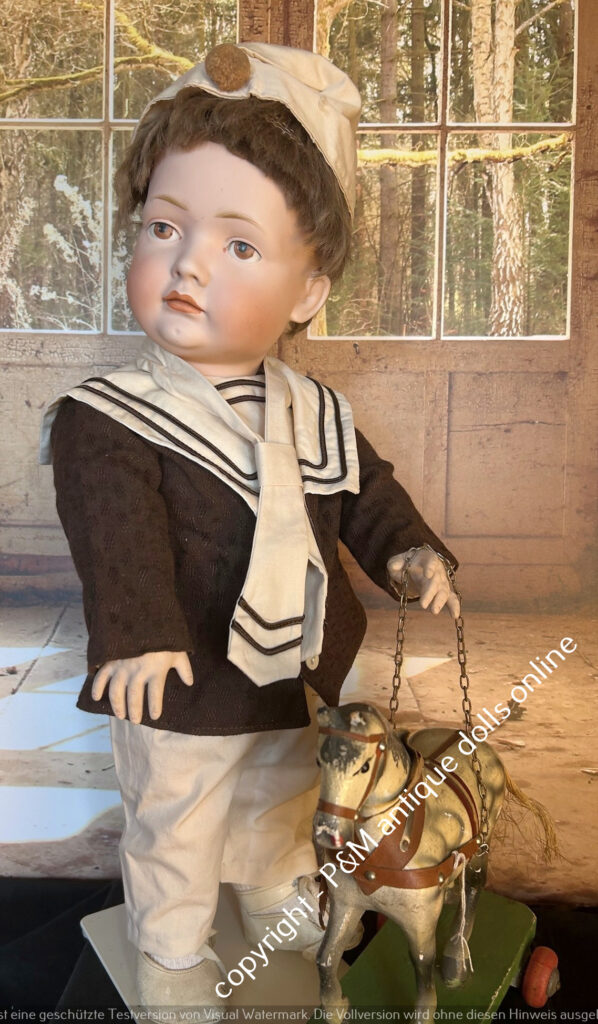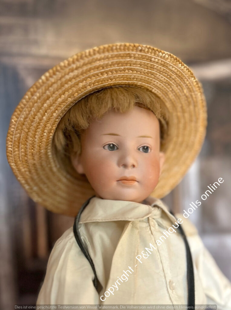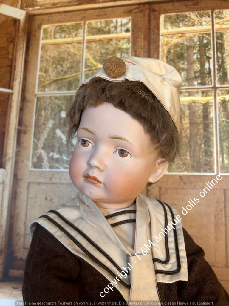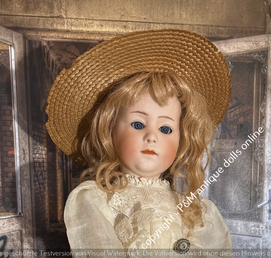 Very rare Bruno Schmidt, # 2023 in ~ 20″, toddler, perfect at all, brown painted eyes, solid dome, here also with add. wig, perfect very fat toddler, ~ 1912