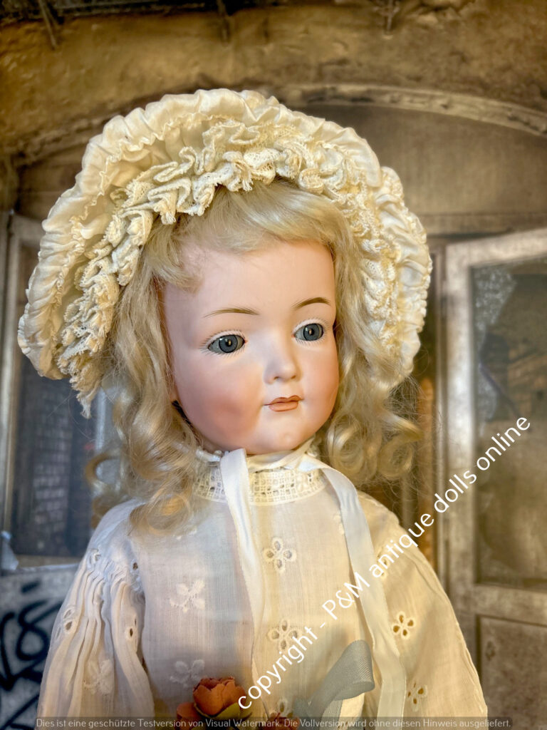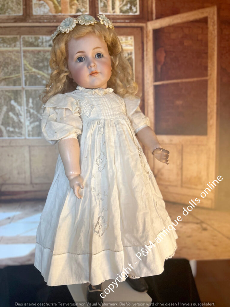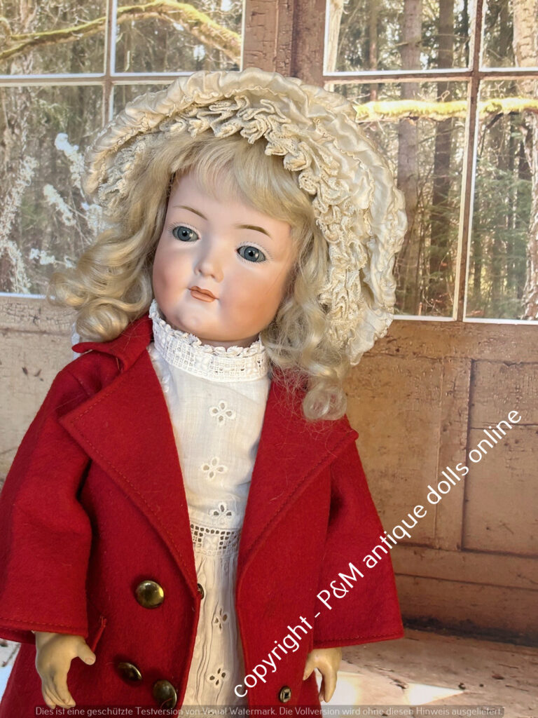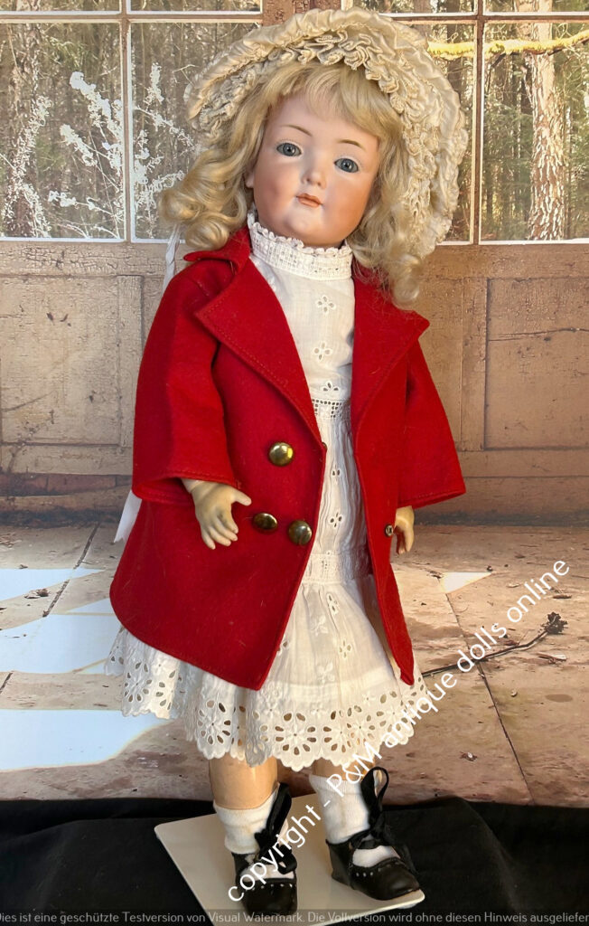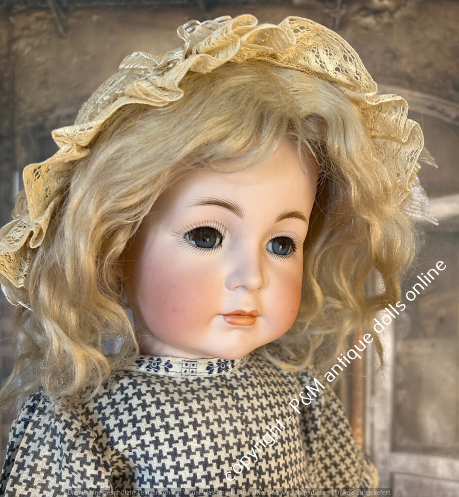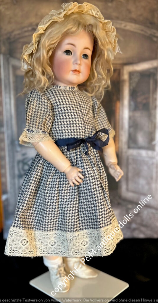 SOLD…Kämmer & Reinhardt, # 117 in ~ 22″, closed mouth, perfect bisque, blue sleep eyes, orig. pretty wig, very good orig. fully jointed body, old dressed. ~ 1912