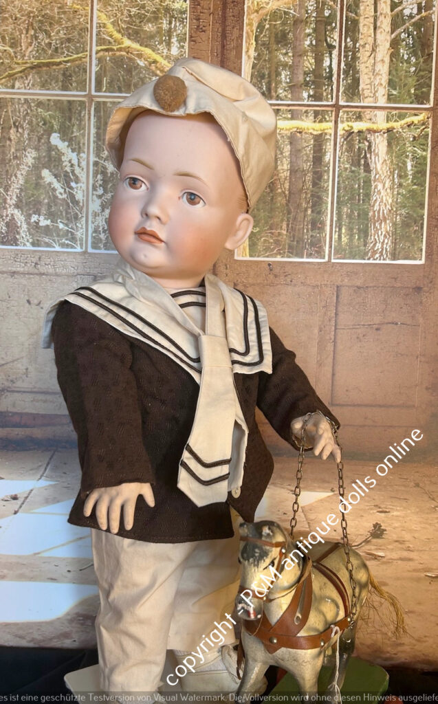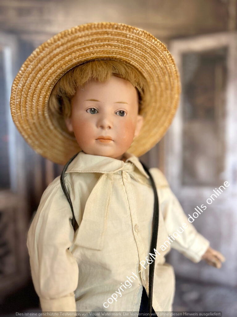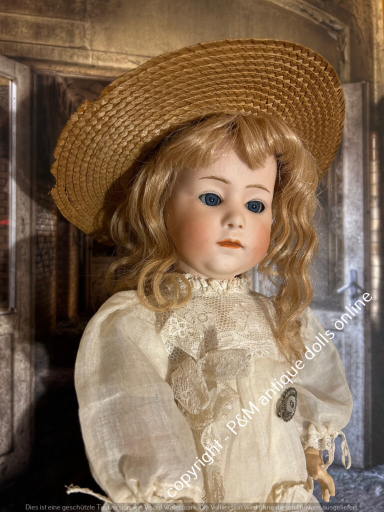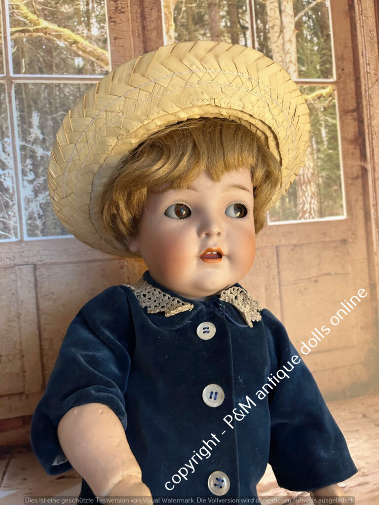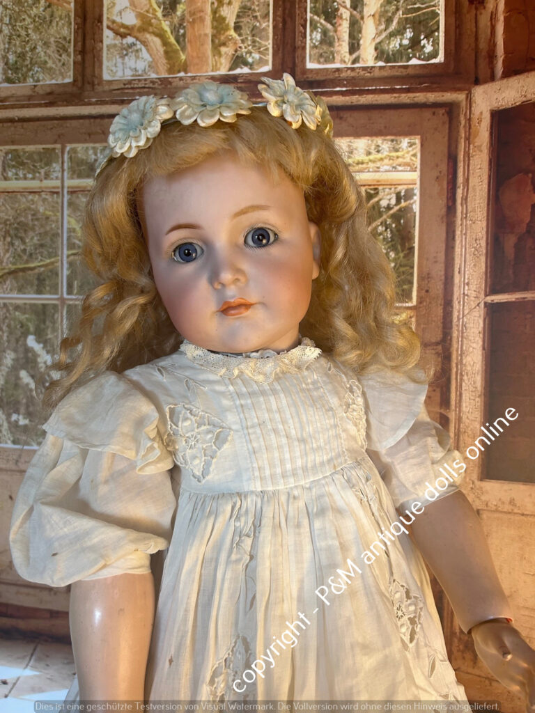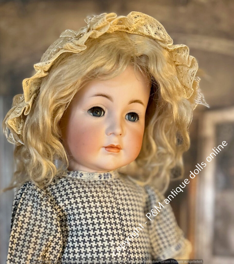 SOLD…Kämmer & Reinhardt, # 117 in ~ 22″, closed mouth, perfect bisque, blue sleep eyes, orig. pretty wig, very good orig. fully jointed body, old dressed. ~ 1912