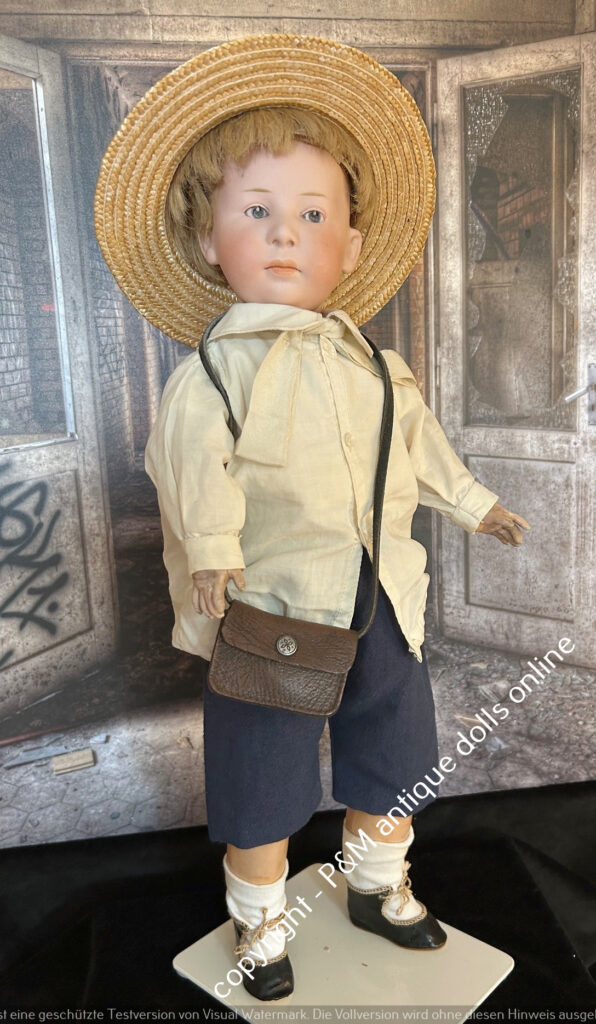 Very rare Kley & Hahn, # 549 with closed mouth, blue sleep eyes, antique dressed, orig. good body, antique shoes, ~ 18″ tall, ~ 1912