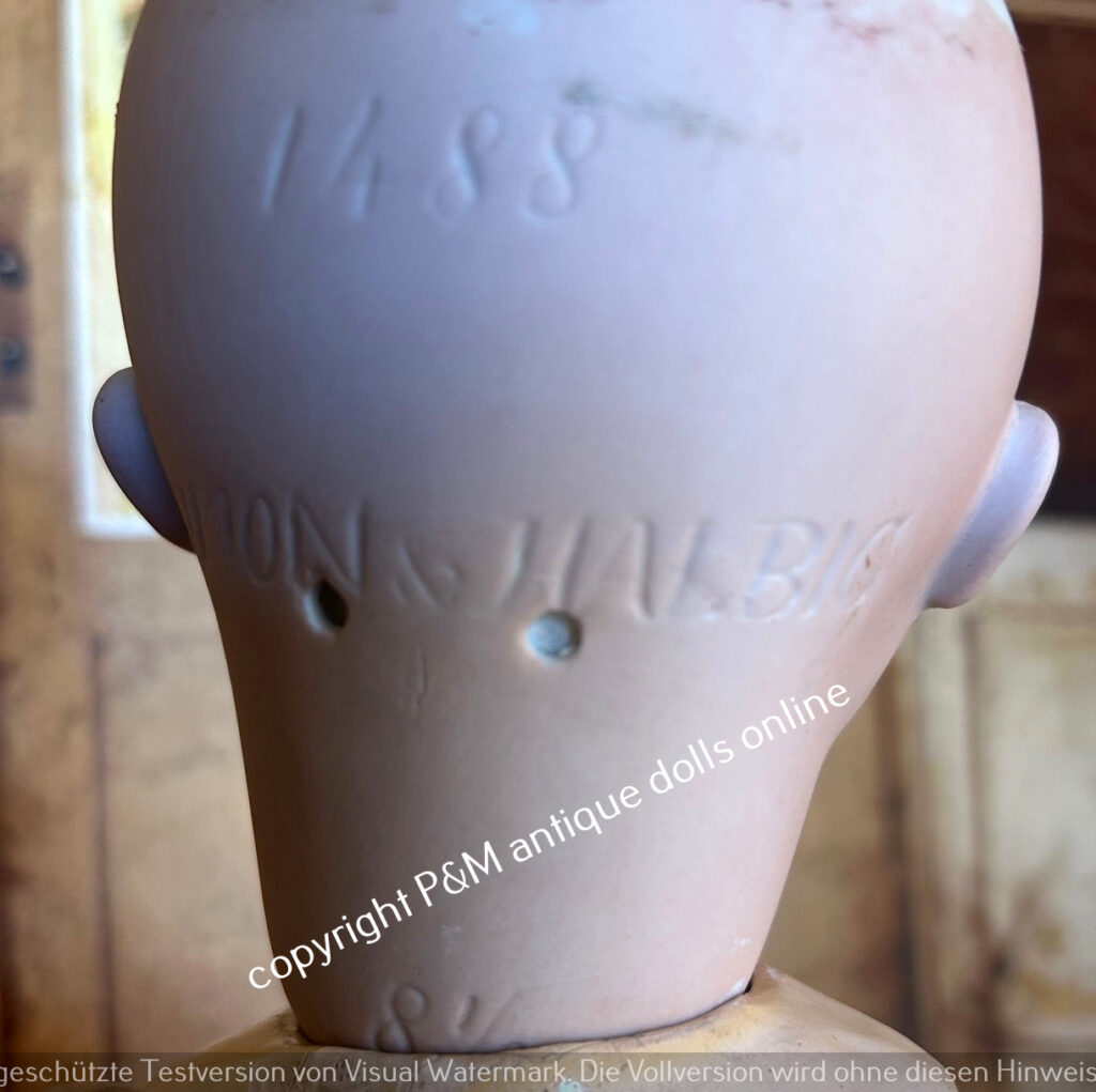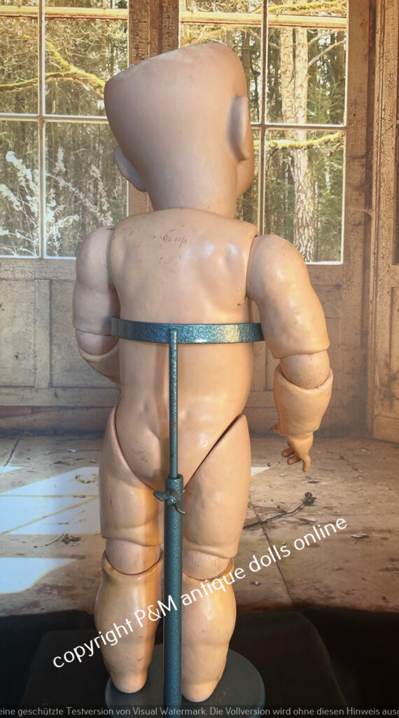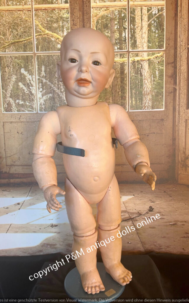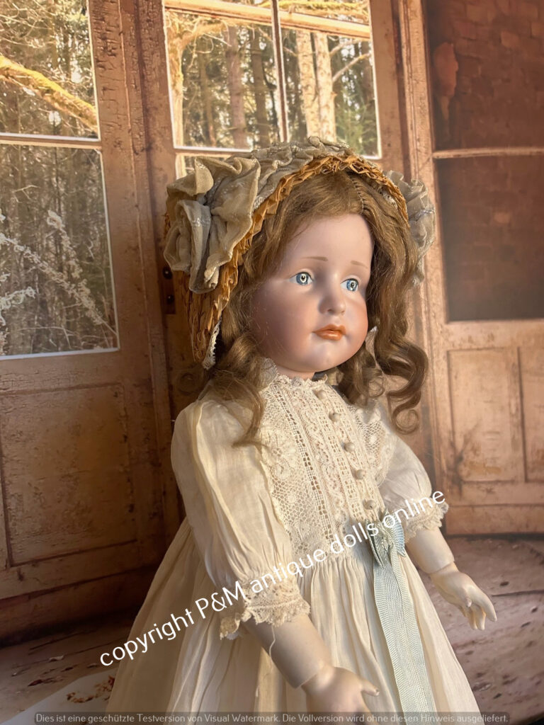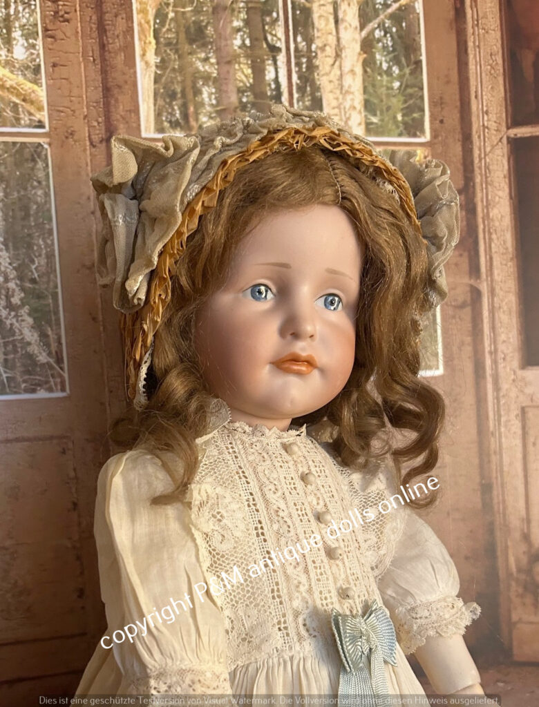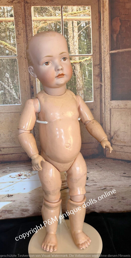 Sehr selten zu findende Bruno Schmidt, # 2023 / 539 in ~ 54 cm, perfektes fehlerfreies Porzellan, braune gemalte Augen, Vollkopf und antike Perücke wahlweise, guter Toddlerkörper, tw. alt bekleidet. ~ 1912