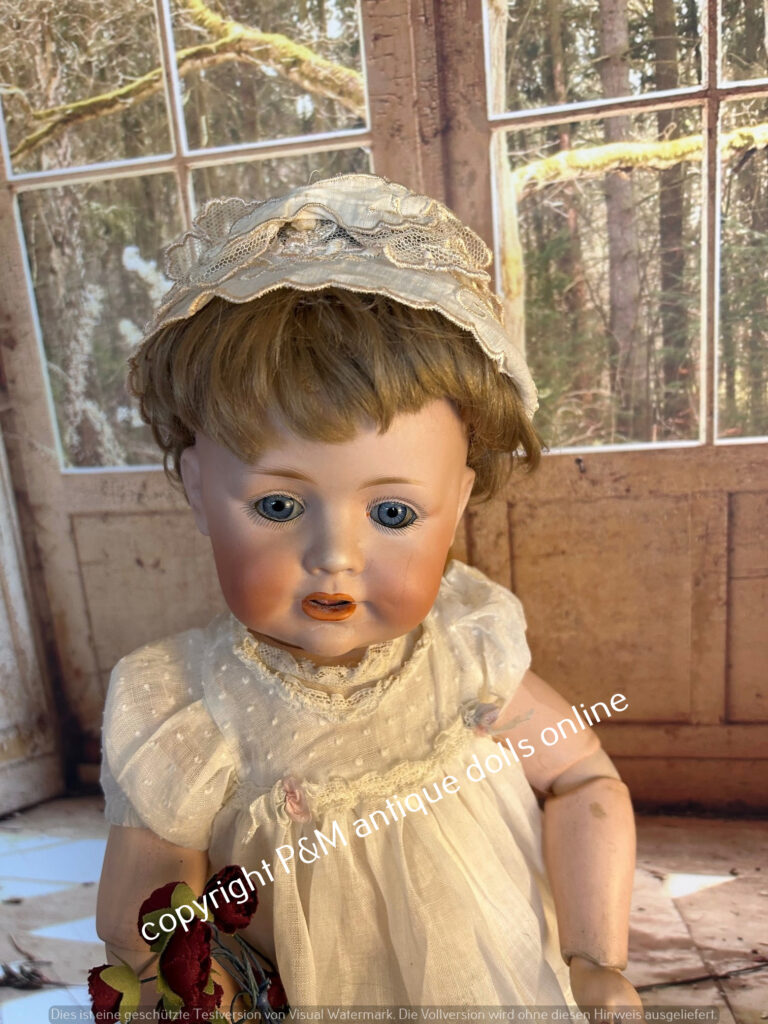 Rare “ Gretchen“ from Kämmer & Reinhardt, # 114 in ~ 18″, perfect bisque with NO wig pulls whats rare enough, beautiful painted and nice blue eyes, orig. wig., orig. very goog fully jointed body. Dress and head, shoes old, maybe original. ~ 1912